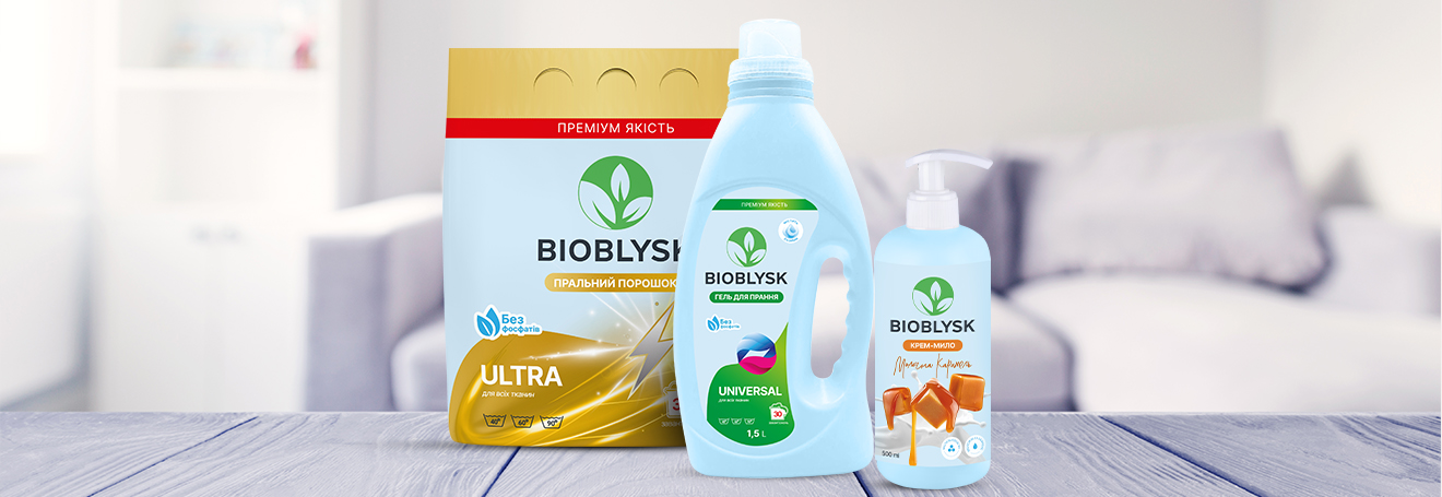 Our unique recipe for household chemicals BioBlysk is based on the use of European certified components that give products the highest level of quality so that it can ensure perfect cleanliness and shine in your home.