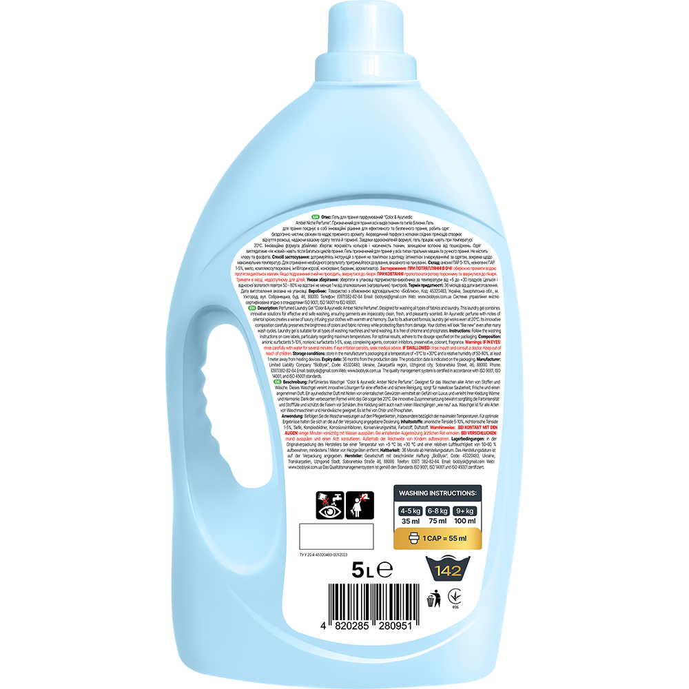 The laundry gel is perfumed "Color & Ayurvedic Amber Niche Perfume". Designed for washing all types of fabrics and types of linen. The laundry gel combines innovative solutions for efficient and safe washing, makes clothes flawlessly clean, fresh and give a pleasant aroma. Ayurvedic perfume with notes of oriental spices creates a sense of luxury, giving your clothes warmth and harmony. Thanks to the improved formula, the gel works even at a temperature of 20 ° C. The innovative formula carefully preserves the brightness of colors and saturation of tissues, protecting the fibers from damage. Clothes will look "like new" even after many washing cycles. The gel is designed for washing in all types of washing machines and hand washing. Does not contain chlorine and phosphates.