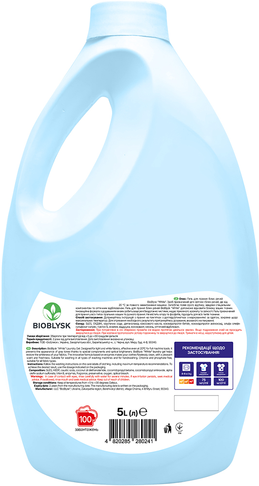The product is designed for light and white things, acting from 20 °C at full load of the machine. Prevents the appearance of a gray hue, thanks to special components and optical bleach. White Whywish gel will help restore the whiteness of your fabrics. An innovative formula with addition enzyme makes your things flawlessly clean, gives you a pleasant aroma and freshness. The gel is designed for washing in all types of washing machines and hand washing. Does not contain chlorine and phosphates, suitable for all types of fabric.