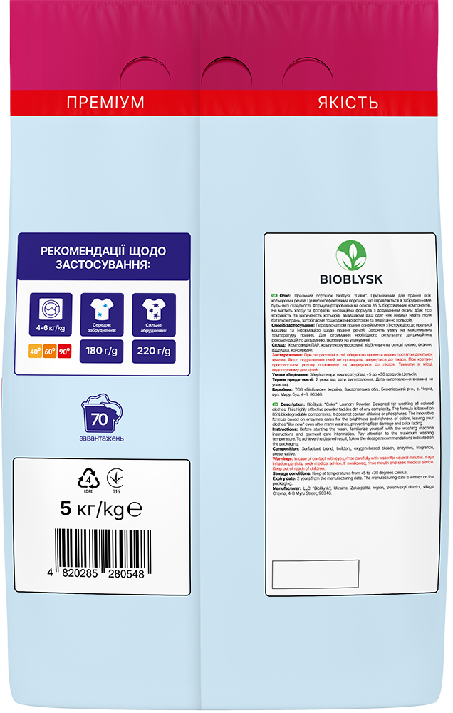 Washing powder “Color” BioBlysk 5 kg