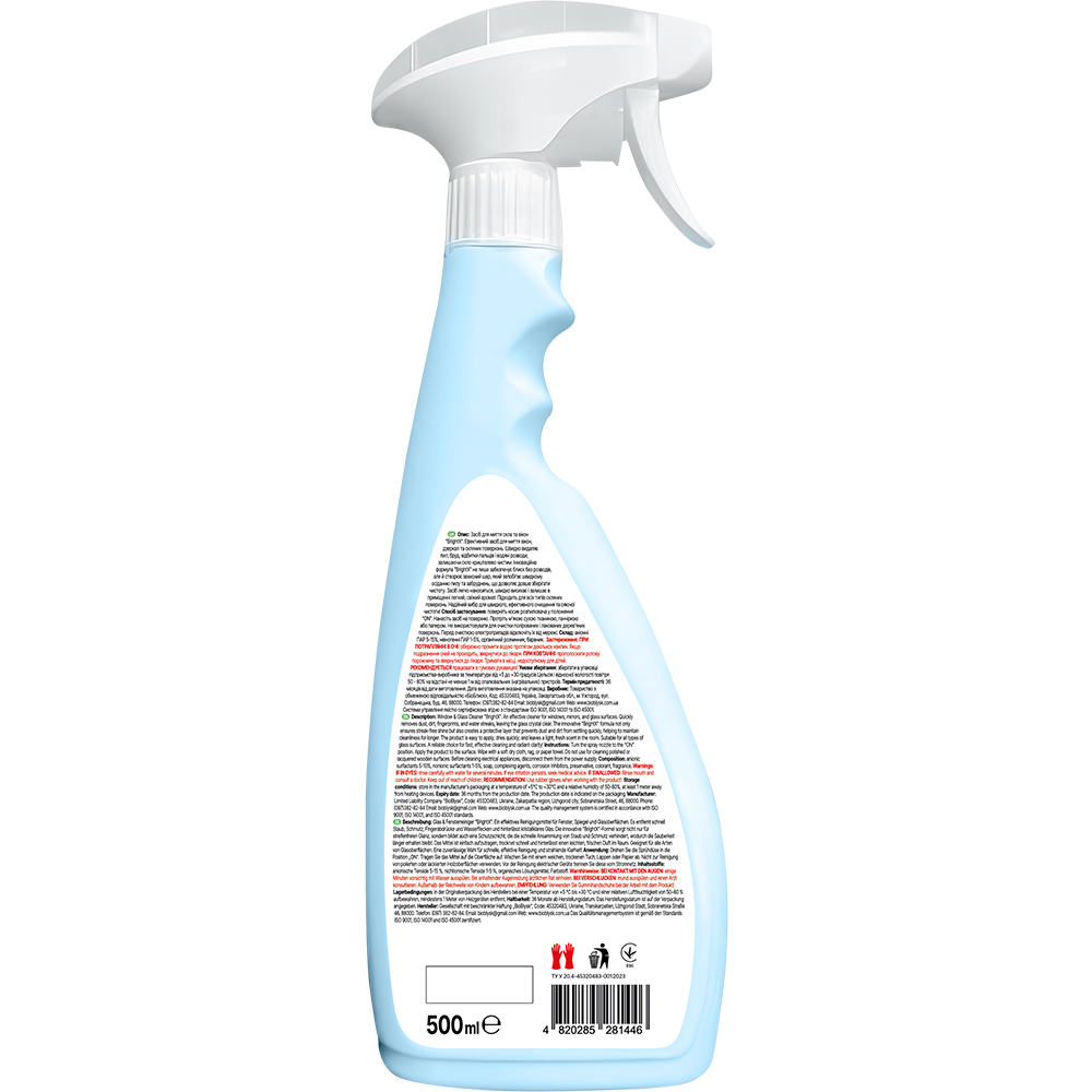 Glass and window washing "BrightX". Effective detergent for washing windows, mirrors and glass surfaces. Quickly removes dust, dirt, fingerprints and water stains, leaving the glass crystal clean. The innovative formula "BrightX" not only provides shine without stains, but also creates a protective layer that prevents rapid subsidence of dust and dirt, which allows you to keep its cleanliness for longer. The product is easily applied, dries quickly and leaves a light, fresh aroma in the room. Suitable for all types of glass surfaces. Reliable choice for quick, effective cleansing and radiant cleanliness!